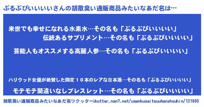 ぶるぶぴいいいいさんの胡散臭い通販商品みたいなあだ名をツクッター!