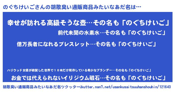 | 肩書あだ名 | 『のぐちけいご大佐』『のぐちけいご艦長』 |