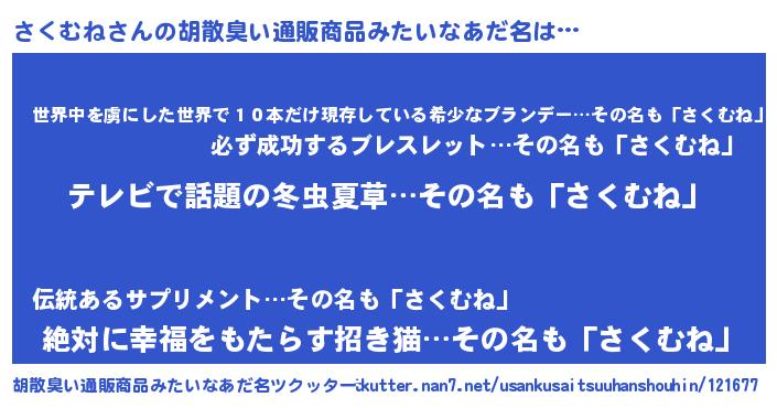 | ヘコむあだ名 | 『さくむね(震え声)』『さくっふぃ~』 |