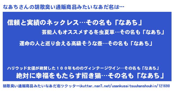 | 意味不明あだ名 | 『つくし科なあち属』『永久保存なあち』 |