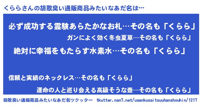 | 男性向けラノベタイトル風あだ名 | 『緋弾のクララ』『くららの憂鬱』 |