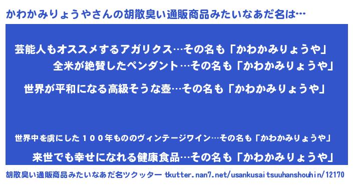 | 肩書あだ名 | 『かわかみりょうや大統領』 |