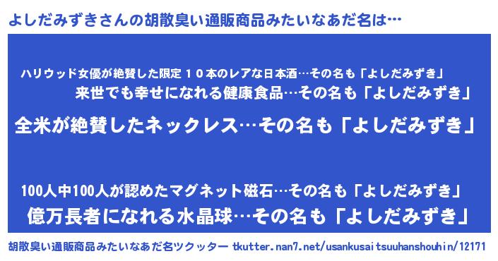 | 意味不明あだ名 | 『とにかく怪しいよしだみずき』 |