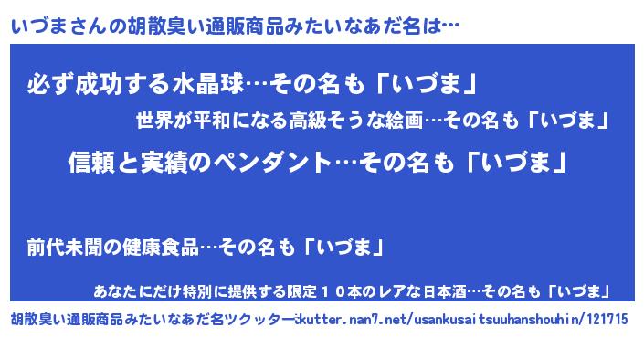 | 意味不明あだ名 | 『とにかく怪しいいづま』 |