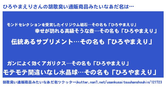 | 意味不明あだ名 | 『とにかく怪しいひろやまえり』 |
