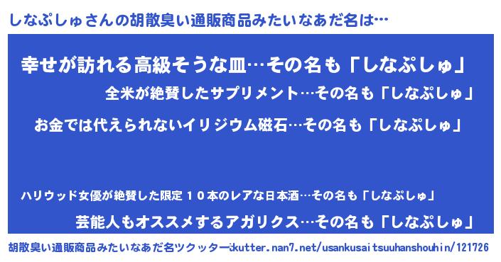 | ヒーロー風カッコイイあだ名 | 『慈愛の使者しなぷしゅ』『幻影騎士シナ』 |