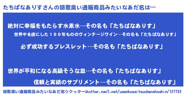| 恥ずかしいあだ名 | 『プリティーたちばなありす』『たちちん』 |