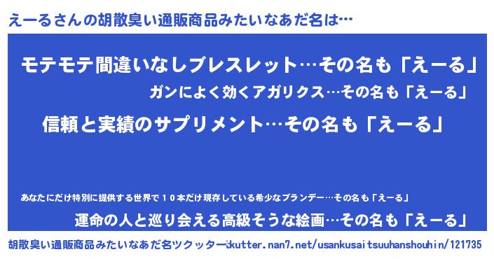 | 意味不明あだ名 | 『とにかく怪しいえーる』『自称えーる』 |