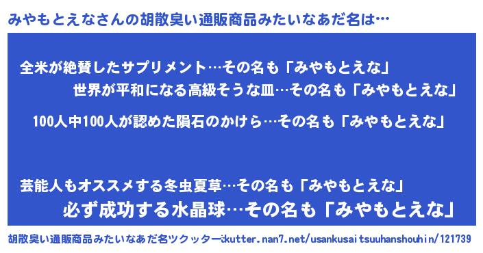 | ヘコむあだ名 | 『みやぷりん』『みやふぇ~』 |