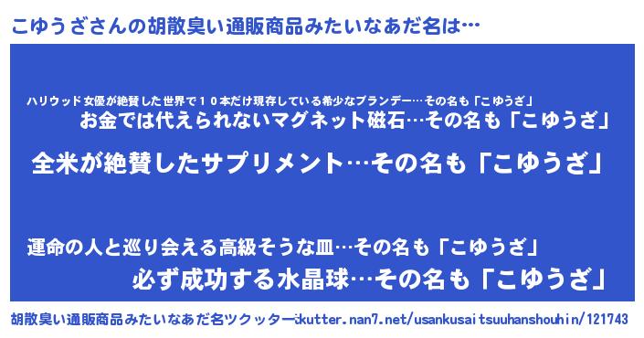 | 女子向けラノベタイトル風あだ名 | 『こゆうざの玉の輿計画!』 |