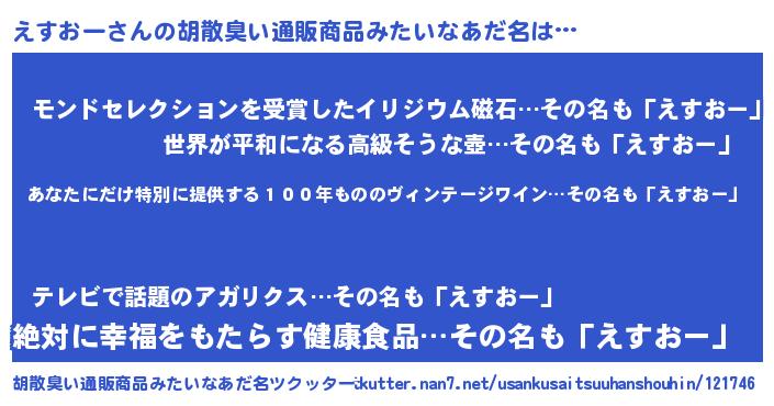 | 意味不明あだ名 | 『住所不定無職えすおー(12歳)』 |