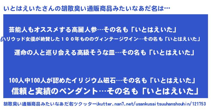 | 意味不明あだ名 | 『いとはえいたフォーエバー』 |