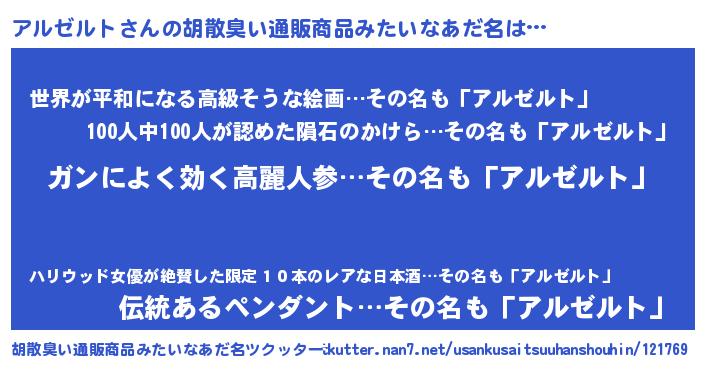 | 意味不明あだ名 | 『自称アルゼルト』 |