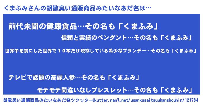 | ヘコむあだ名 | 『くまふみ(遠い目)』『くまにゅー』 |