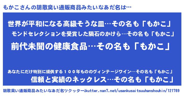 | ヘコむあだ名 | 『もかこ(爆)』『豆乳』『もかぷりん』 |