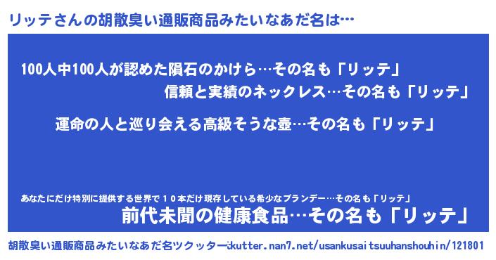 | 意味不明あだ名 | 『リッテフォーエバー』『永久保存リッテ』 |
