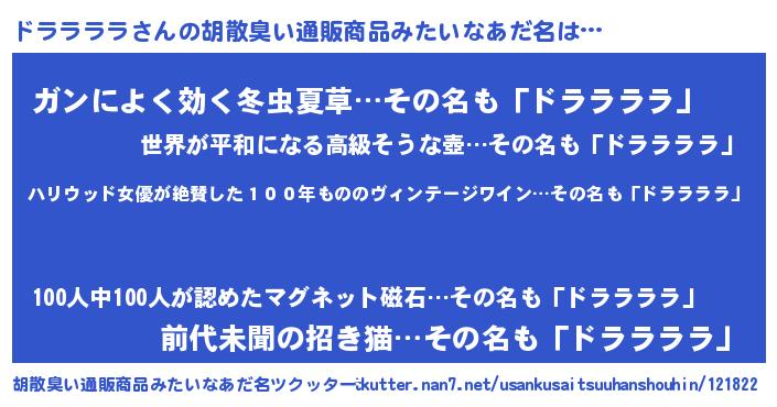 | ヘコむあだ名 | 『ドララララ(笑)』『豆乳』『ドラを』 |