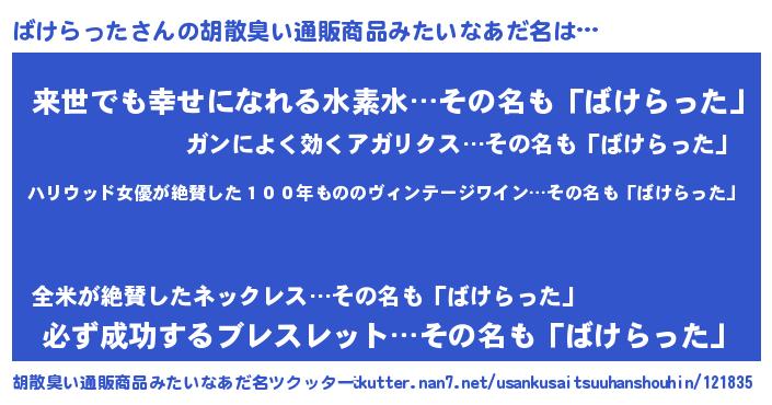 | ヘコむあだ名 | 『ばけらった(小並感)』『ばけもー』 |