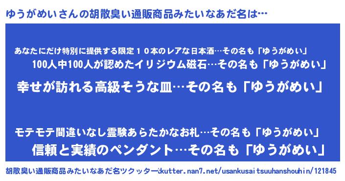 | ヒーロー風カッコイイあだ名 | 『ウルトラゆうがめいマン』 |