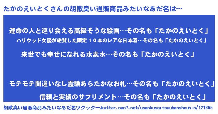| ヘコむあだ名 | 『たかのえいとく(遠い目)』『酢こんぶ』 |