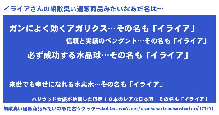 | 意味不明あだ名 | 『ペロリンイライア』『自称イライア』 |