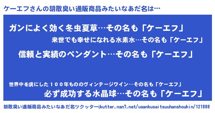 | 意味不明あだ名 | 『とにかく怪しいケーエフ』 |