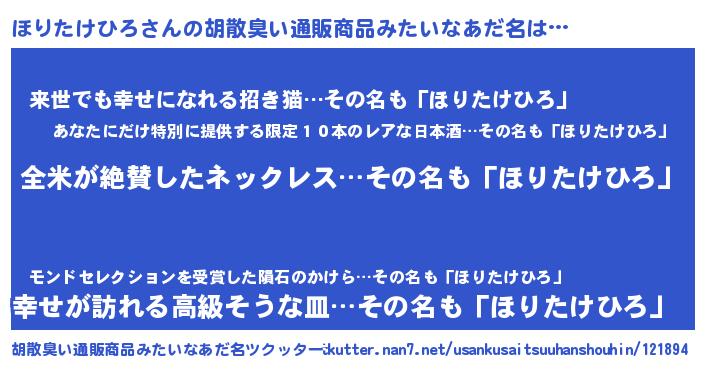| 意味不明あだ名 | 『とにかく怪しいほりたけひろ』 |