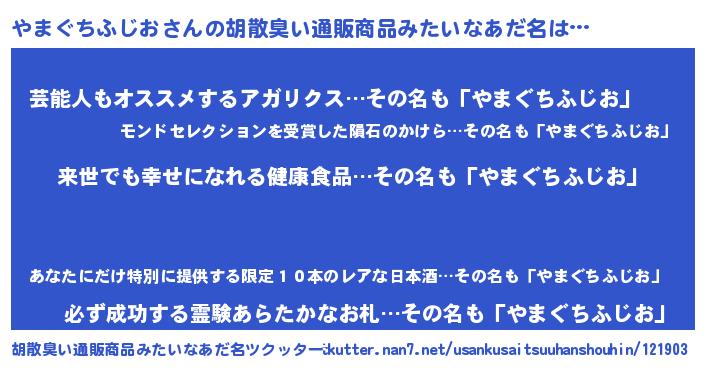 | 意味不明あだ名 | 『永久保存やまぐちふじお』 |