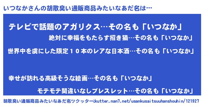 | 意味不明あだ名 | 『住所不定無職いつなか(56歳)』 |