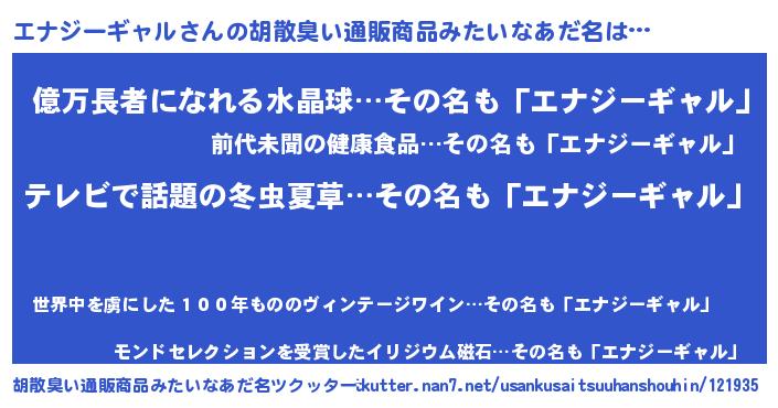 | ヘコむあだ名 | 『エナっふぃ~』『エナジーギャル(苦笑)』 |