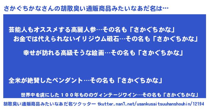 | 意味不明あだ名 | 『さかぐちかなフォーエバー』 |
