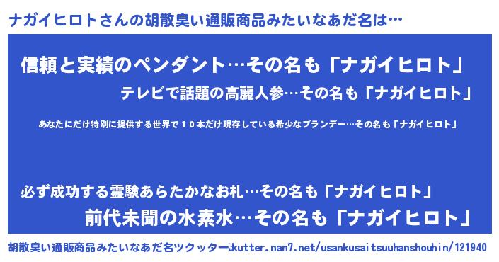 | 欧米人風あだ名 | 『ダレノガレナガイヒロト』 |