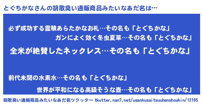 | ヘコむあだ名 | 『とぐっ子』『とぐっふぃ~』『豆乳』 |