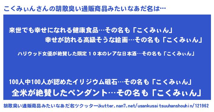 | 意味不明あだ名 | 『住所不定無職こくみぃん(53歳)』 |