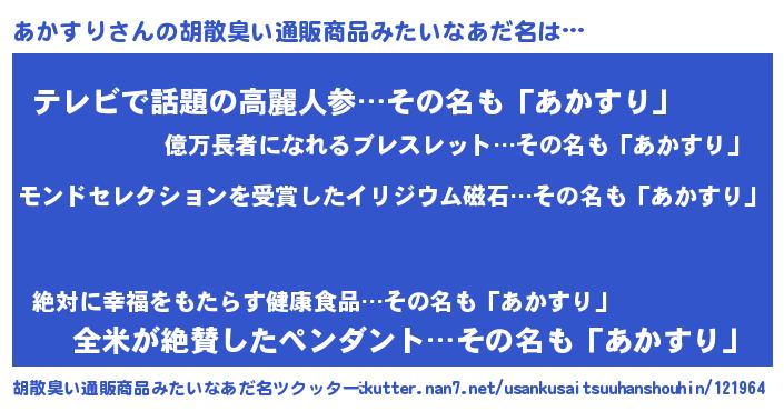 | 男性向けラノベタイトル風あだ名 | 『ノーゲーム・ノーアカスリ』 |