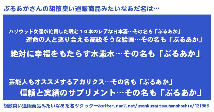 | ヘコむあだ名 | 『ぶるあか(苦笑)』『ぶる太郎』 |