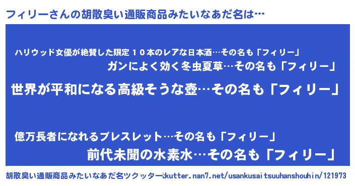 | 意味不明あだ名 | 『フィリーフォーエバー』『自称フィリー』 |