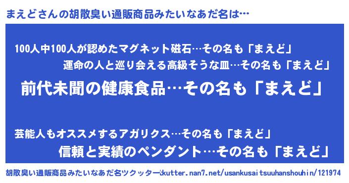 | ヘコむあだ名 | 『まえど(笑)』『まえお』『レバニラ』 |