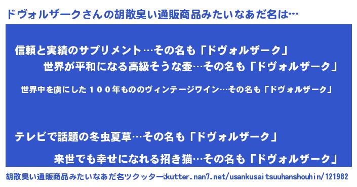 | 意味不明あだ名 | 『住所不定無職ドヴォルザーク(12歳)』 |