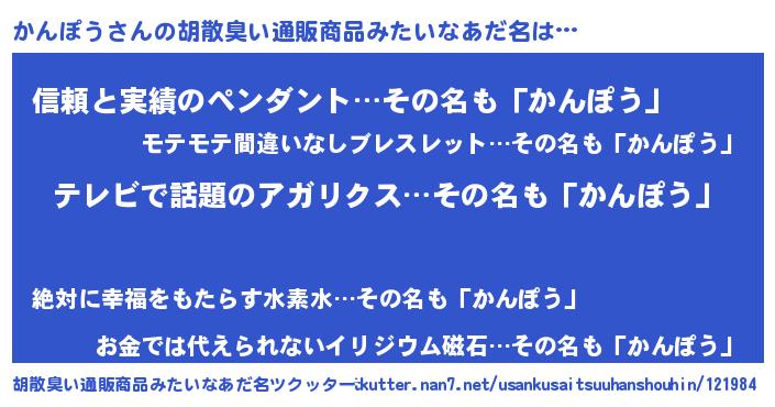 | 意味不明あだ名 | 『もやし科かんぽう属』『自称かんぽう』 |