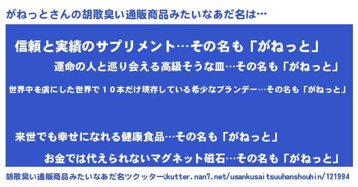 | ピコ太郎風あだ名 | 『ガネ六郎』『ガガ太郎』『ピガ次郎』 |