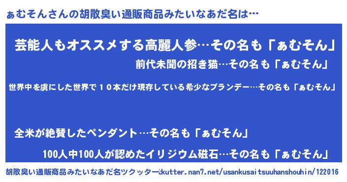 | 恥ずかしいあだ名 | 『ァムソンデラックス』『ぁむちん』 |