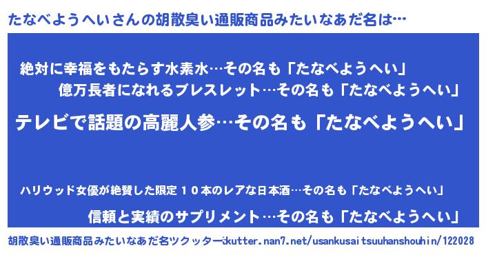 | 女子向けラノベタイトル風あだ名 | 『たなべようへいアンティーク』 |