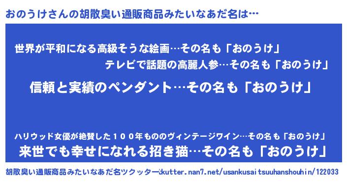 | 意味不明あだ名 | 『とにかく怪しいおのうけ』 |