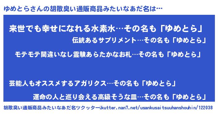 | ヘコむあだ名 | 『ゆめっふぃ~』『ゆめとら(遠い目)』 |