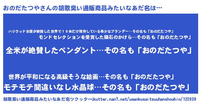 | 意味不明あだ名 | 『とにかく怪しいおのだたつや』 |