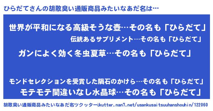 | 意味不明あだ名 | 『自称ひらだて』『ひらだてフォーエバー』 |