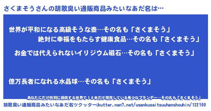 | 男性向けラノベタイトル風あだ名 | 『ノーゲーム・ノーサクマソウ』 |