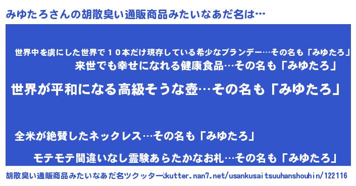 | 意味不明あだ名 | 『みゆたろフォーエバー』 |