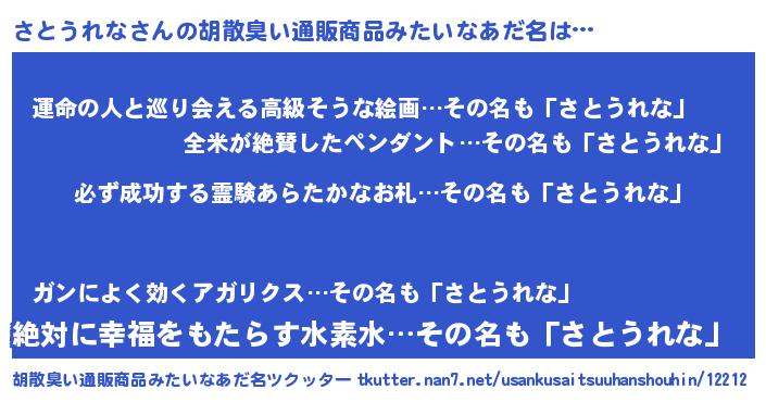 | ヘコむあだ名 | 『さとっふぃ~』『酢こんぶ』 |